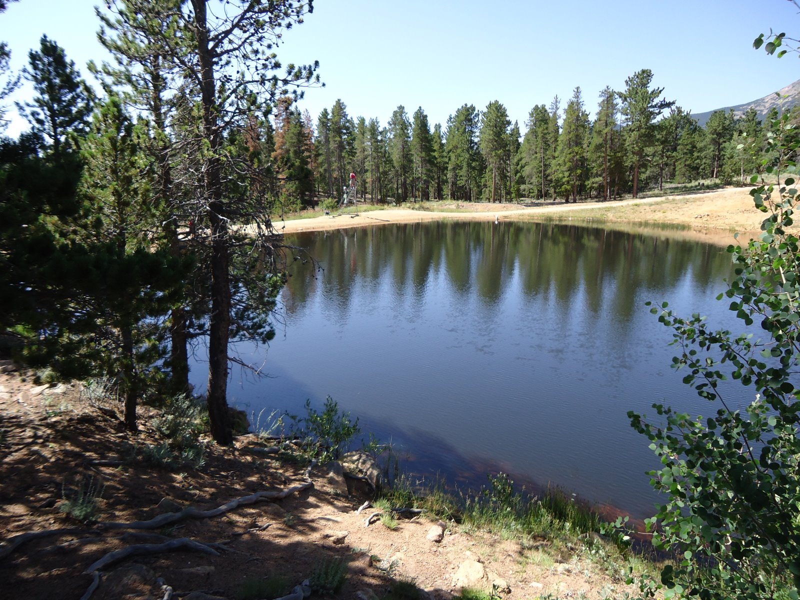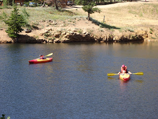 This is the lake. There is a zip line that goes across one end. Kerry and Otto went fishing yesterday and kayacking today.