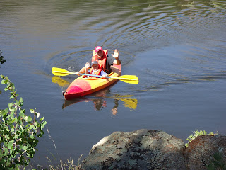 Otto and Dad. Kerry is showing Otto how to maneuver the kayak.
