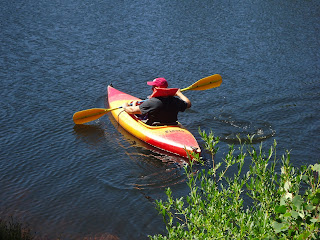 Solo Otto. He was actually pretty good at this. It takes a lot of muscle to make this thing move and Otto did pretty well. Gabe went earlier with his cabin and Kerry watched. He said Gabe was pretty good at it. Maybe our new family sport will be kayaking?