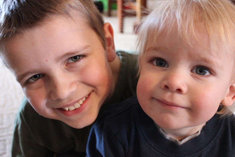We encourage serving others, especially siblings, by having the older and younger boys work together at tasks. When a younger brother is having difficulty completing a task, we ask an older brother to help. They don’t take over, they don’t complete the task alone, but they do it alongside one another. This is beneficial in a number of ways in our family. It teaches us to watch for when someone else needs help, it teaches us to jump in and be ready to help as best we can whenever we can, and it demonstrates team work and cooperation. Often times, the older brother will be able to show the younger an easier or more efficient way to complete a task.